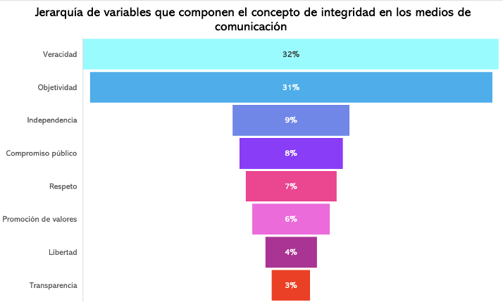 Elaboración propia. Gráfica que muestra la jerarquía de variables que componen el concepto de integridad en los medios de comunicación, obtenida a través de la escala de Saaty.