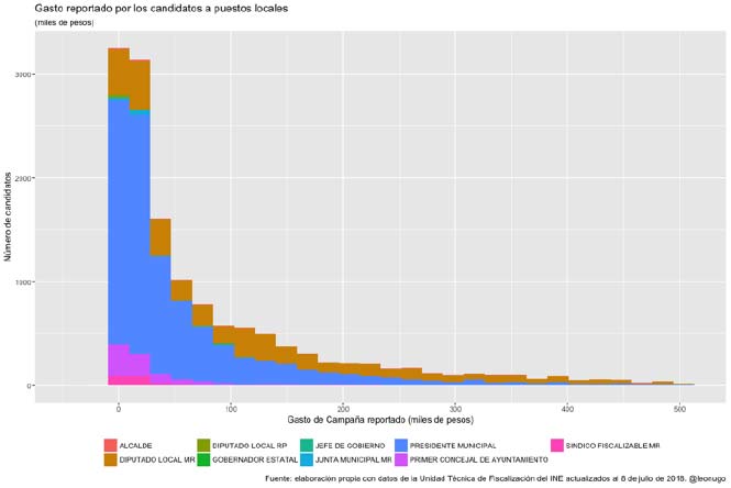Los resultados de la fiscalización de estas elecciones los tendremos hasta el mes de agosto; sin embargo, es un ejercicio fundamental retratar lo que los candidatos declararon, ya que es el piso mínimo que nos permite comenzar a tener una idea del costo de las campañas electorales, así como la distancia entre lo que reportan y lo que realmente gastan (Dinero Bajo la Mesa). Los datos del SIF se pusieron a disposición de los ciudadanos desde el inicio de las campañas en bases que se actualizaban semana a semana y que concentraban la información reportada hasta ese momento por todos los candidatos. Para darle seguimiento a estos datos, hubo varios esfuerzos cívicos para visualizarla de una manera sencilla, como la plataforma hecha por los integrantes de Gobierno Fácil. Ahora podemos desmenuzar la fotografía final.