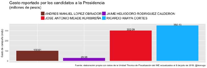 Desde la reforma electoral de 2014 se obligó a todos los candidatos y partidos a reportar en “tiempo real” los gastos e ingresos de sus campañas. Esto significa que todas las operaciones tienen que registrarse, máximo, tres días después de haberse realizado. Una vez concluidas las campañas electorales de 2018, tenemos una imagen precisa de cuánto dijo haber gastado cada uno de los candidatos y en qué.