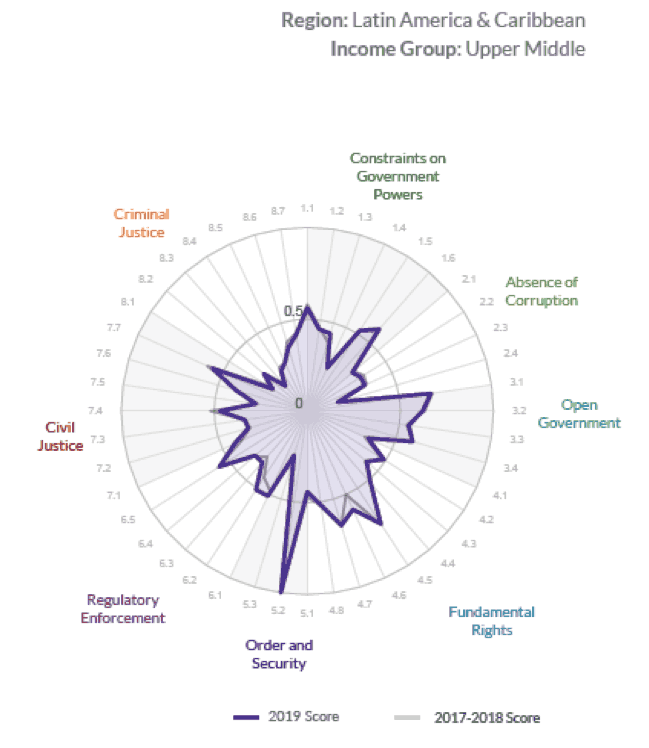 2 Para consultar más detalles sobre la metodología, ver: WJP Rule of Law Index 2019.