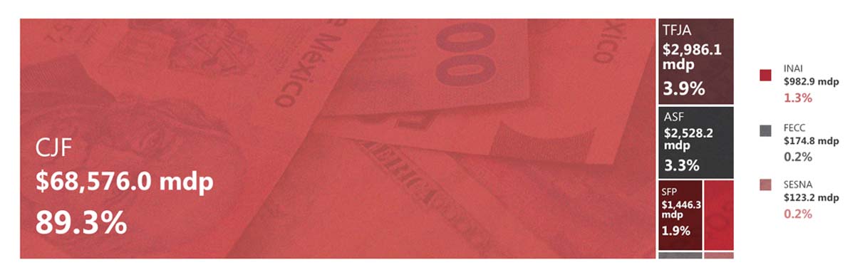 Nota 1: TFJA (Tribunal Federal de Justicia Administrativa); FECC (Fiscalía Especializada en Combate a la Corrupción); CJF (Consejo de la Judicatura Federal).