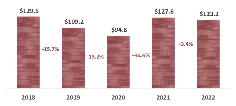 Nota: 2018 a 2020 son montos ejercidos, 2021 es monto modificado al segundo trimestre y 2022 es el monto del PPEF 2021.
