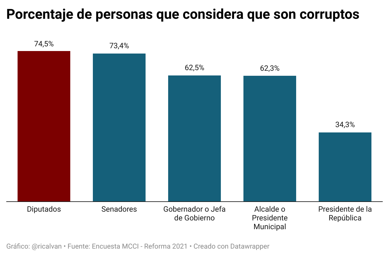 Gracias a las múltiples malas experiencias que hemos tenido con representantes populares de diferentes órdenes de gobierno, la ciudadanía tiende a calificar a todos por igual. Por ejemplo, de acuerdo con datos de la encuesta 2021 de MCCI y Reforma, casi el 75 % de los encuestados califica a los diputados como corruptos. Sabemos que hay múltiples casos que no merecen tal calificativo y la mejor manera de distinguir entre “trigo y paja” es mostrar ante los electores quién es quién. 3de3diputadosfederales.mx es un instrumento que permitirá que el prestigio de las candidatas y los candidatos valiosos no se mezcle con el de los impresentables.