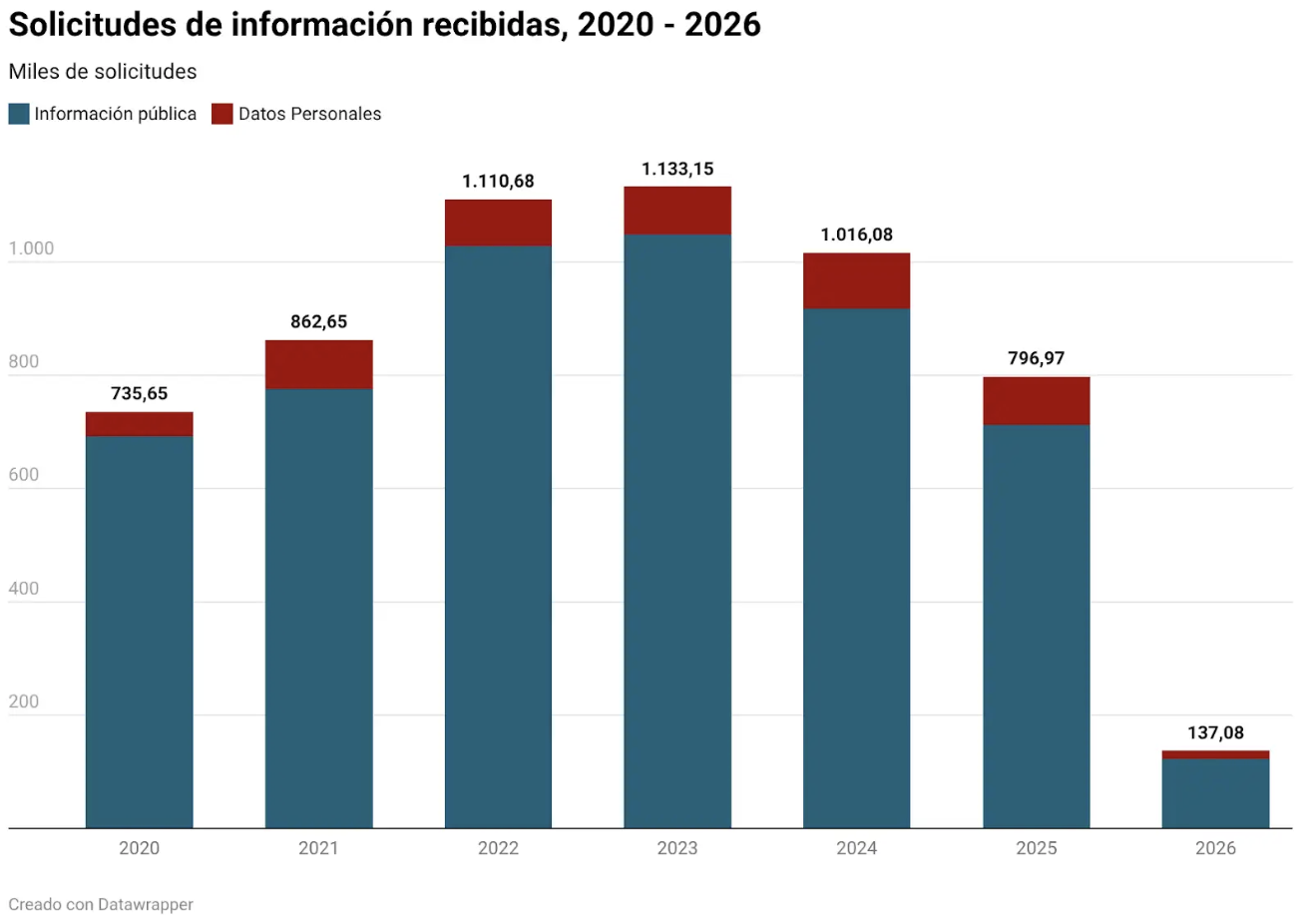 Las solicitudes de acceso a la información y de datos personales han aumentado de manera progresiva en los últimos años por lo que se esperaría que para el ejercicio 2026 aumenten. Con todo, no existen mecanismos para determinar si los medios de presentación de las solicitudes influyen o no en las solicitudes hechas por la ciudadanía. Esto constituye una oportunidad para las autoridades para mejorar la plataforma de transparencia y su uso por la población.
